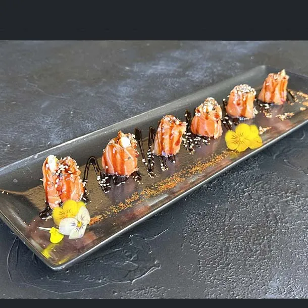 Rollitos de salmón, anguila ahumada, aguacate,