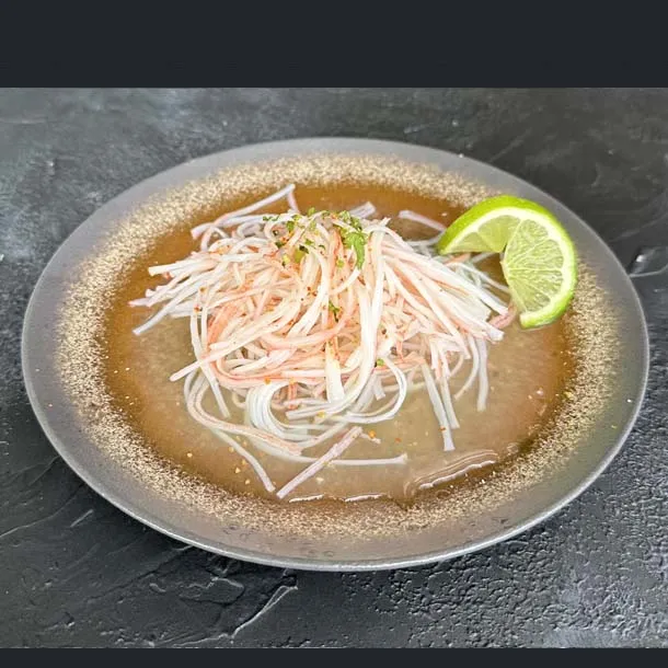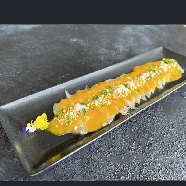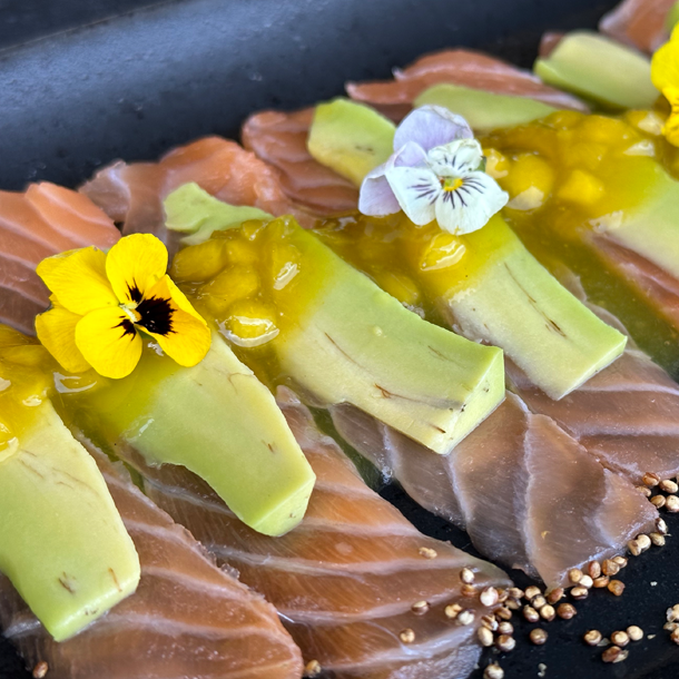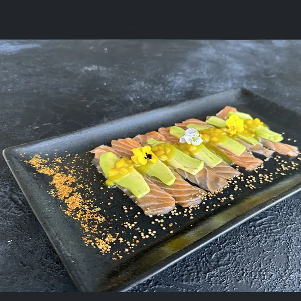 Sashimi de pescado, caviar de cangrejo,