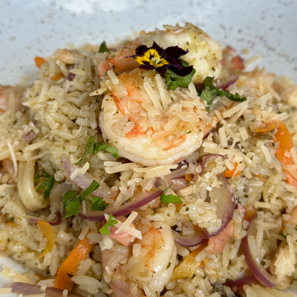 Arroz en Finas Hierbas, con queso mozzarella,