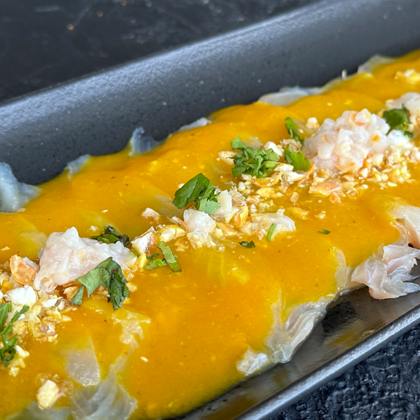Salsa de Maracuyá, envuelto en salmón,